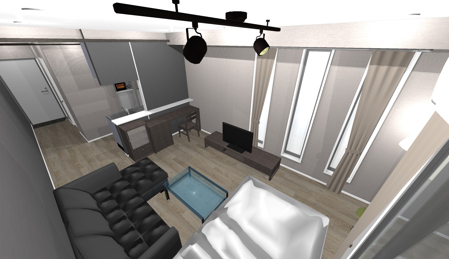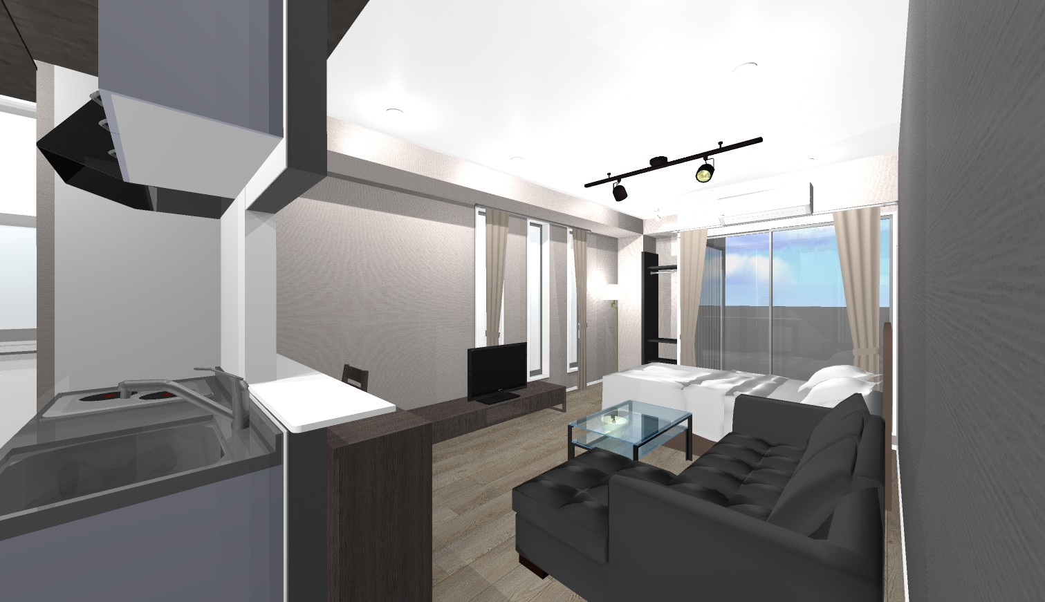 ・人気のモノトーンタイプのおしゃれなお部屋です。